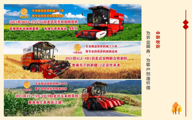 2021年AG官网的盛宴!新款产品重磅来袭!新年伊始,AG官网2021款系列产品焕新而来。作业幅宽2.5米的花生捡拾收割机、新疆-8谷物联合收割机、以及被誉为“黄淮海”的玉米收割机,共...